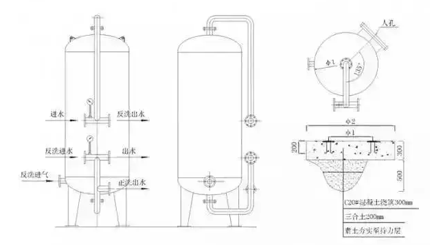 6、占地面积小:制取相同的水量,占地面积为普通砂滤器的1/3以下;