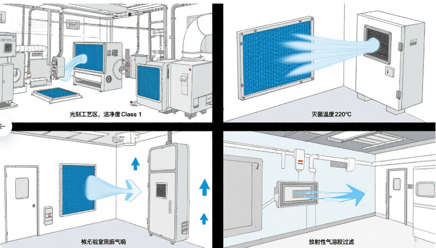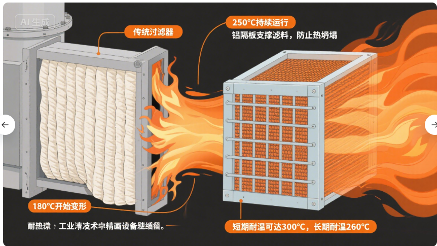 关键词:耐高温过滤器;有隔板高效过滤器;空气净化;HEPA;颗粒物过滤