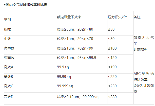 当使用“G~F~H~U”效率规格分类时,可方便地估计所需各级过滤器的效率。在G2~H12中,每隔2~4档设置一级过滤