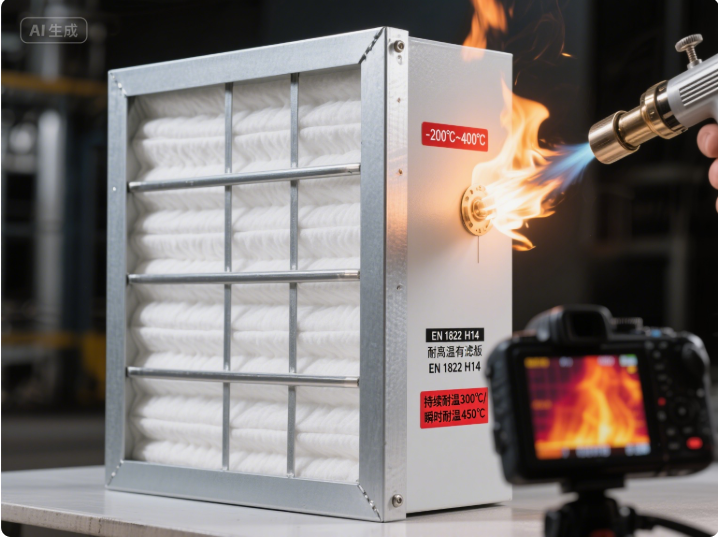 | 过滤效率 (MPPS) | H13 (≥99.95%), H14 (≥99.995%) | 高温下维持效率是核心;需在设定温度下进行气溶胶扫描测试(热态检漏) | EN 1822-4 (需高温适配) |