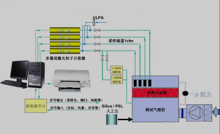 2、用激光粒子计数器测量高效率过滤器(EU5-EU9);