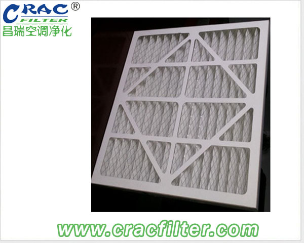 初效板式过滤器主要是由防护网、滤料和外框组成。各个部分的制作材料也有不同。初效板式过滤器的外框材料一般有纸框、铝合金框和镀锌铁框,过滤器的外框的作用是用来固定已折叠完成的滤材。初效板式过滤器的过滤材料有无纺布、尼龙网、活性碳滤材、金属孔网等,这些过滤材料是以折叠的形式装入硬纸板内,流入的空气中的尘埃粒子被过滤材料阻挡在褶与褶之间,洁净空气从另一面均匀流出。