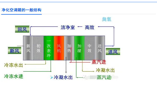 空气过滤方面:一般空调采用一到二级过滤,而净化空调采用三到四级过滤;